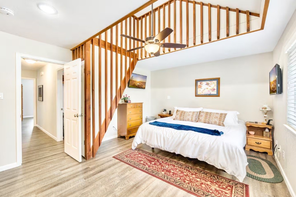 Freshly updated and thoughtfully furnished, this spacious three bedroom home is designed for easy gathering. The open floor plan connects a full kitchen, dining area, counter height seating, and a welcoming living room with a 55 inch Smart TV, perfect for movie nights after a day of wine tasting.