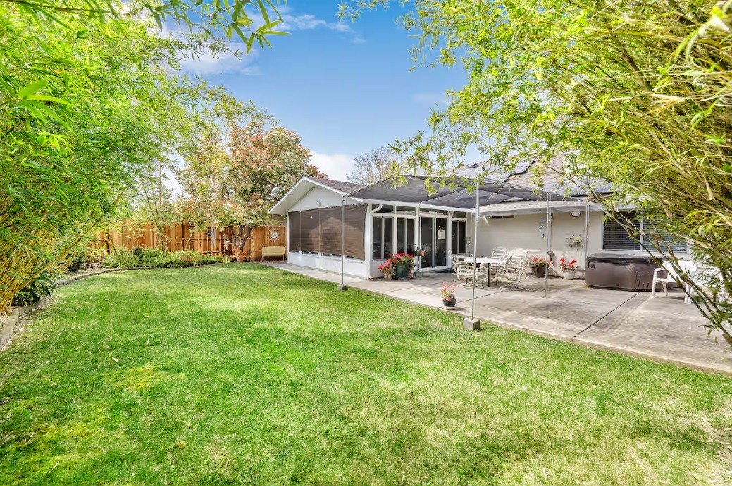 The living room offers two comfortable sofas and complimentary high speed WiFi. Step outside to a fenced backyard with patio seating, ideal for evening conversations under the Delta sky. Guests also enjoy onsite parking and keyless entry for a seamless stay. Please note the hot tub is not available for guest use.