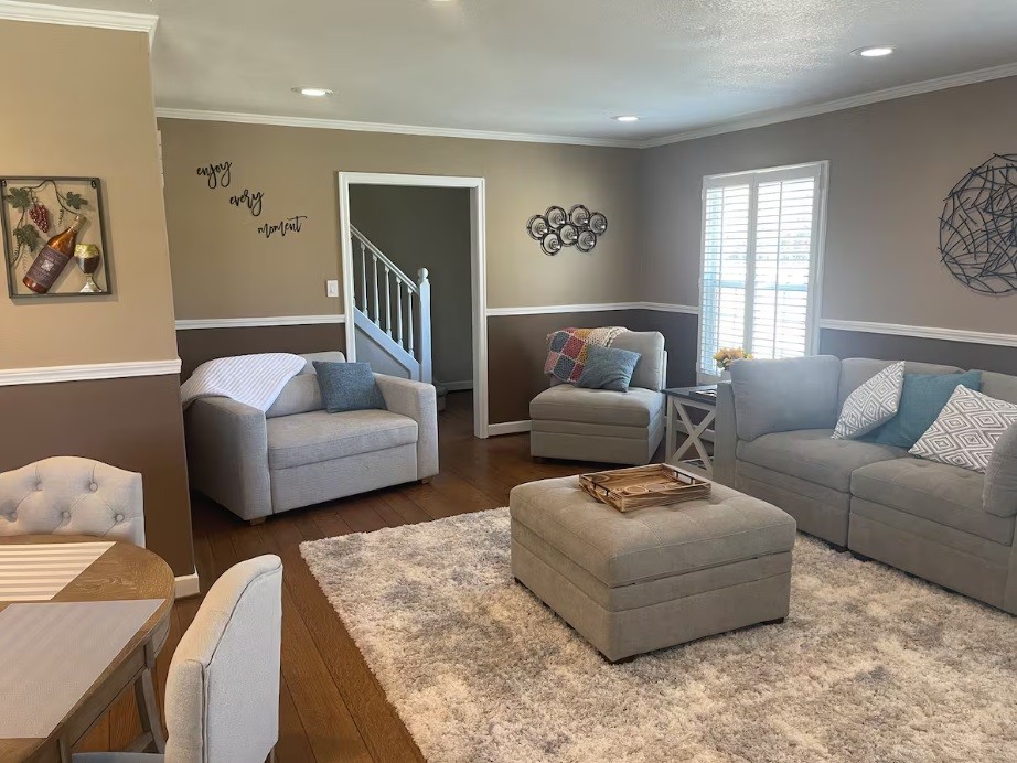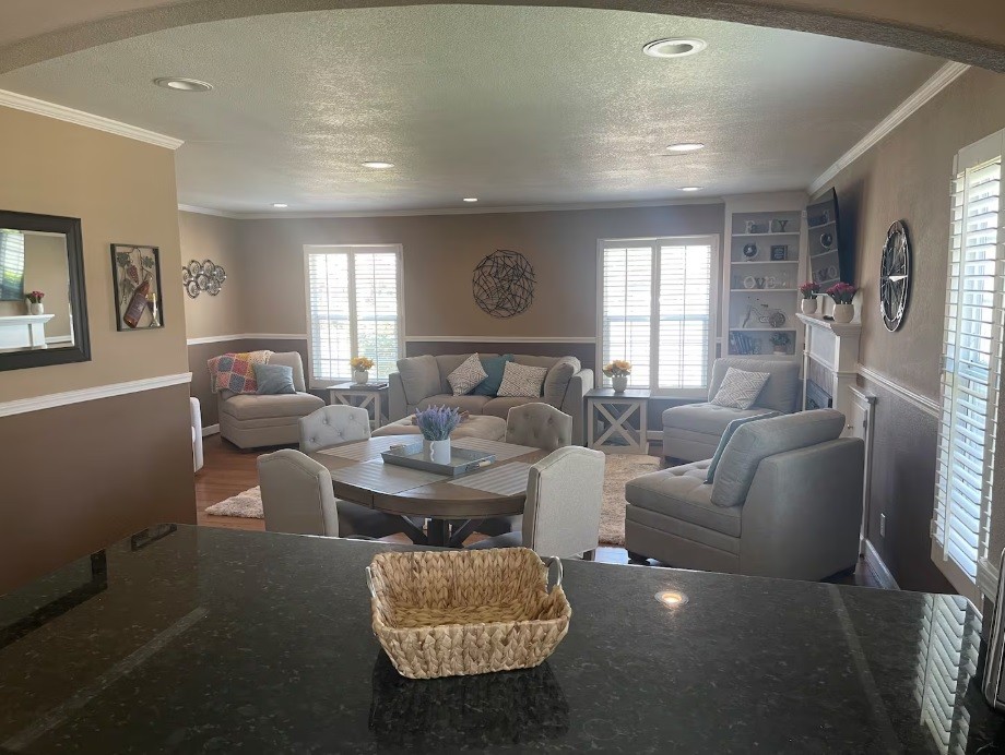 The main living area flows easily into the kitchen, creating a comfortable gathering space. Kick back with the smart TV and stream your favorites after a day of wine tasting. The oversized chair pulls out into a twin sleeper, because in Lodi, one more friend is always welcome.