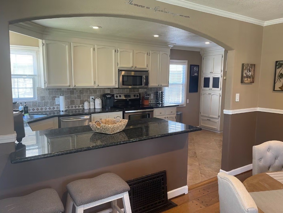 The kitchen is fully equipped with a stove, oven, dishwasher, and microwave, plus thoughtful extras like a Keurig, air fry toaster oven combo, hand mixer, crockpot, and rice steamer. Whether you are prepping a farmers market feast or late night snacks after a tasting tour, you are covered.