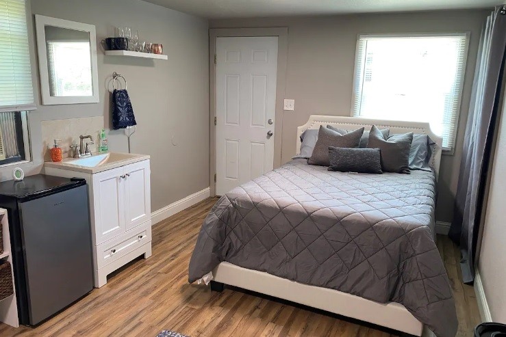 This space is perfect for a weekend getaway or traveling working professionals. No kitchen? That's no problem, as you are minutes away from downtown dining. The quiet neighborhood has plenty of street parking with your own gate entrance.