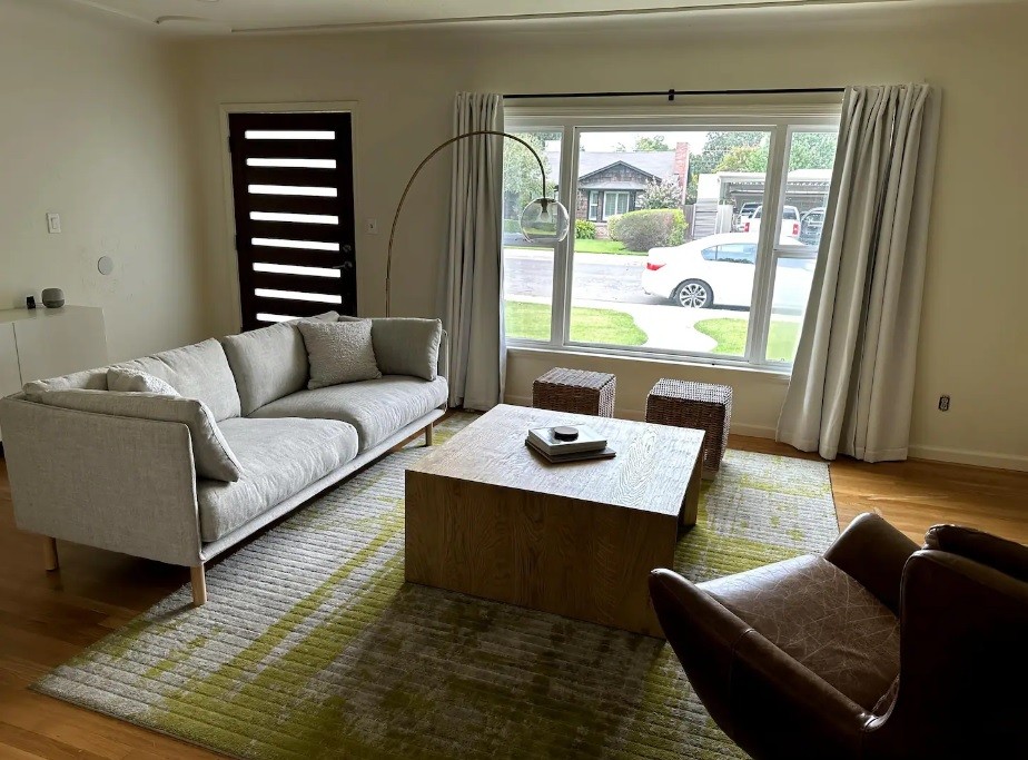 The home is tastefully yet functionally decorated in a minimalist style. The kitchen has basics, towels, and a washer and dryer in the garage. The office is on the opposite side of the home for quiet time. There is a Nespresso machine, as well as a toaster, microwave, and Ninja blender. If you need anything, please feel free to reach out!