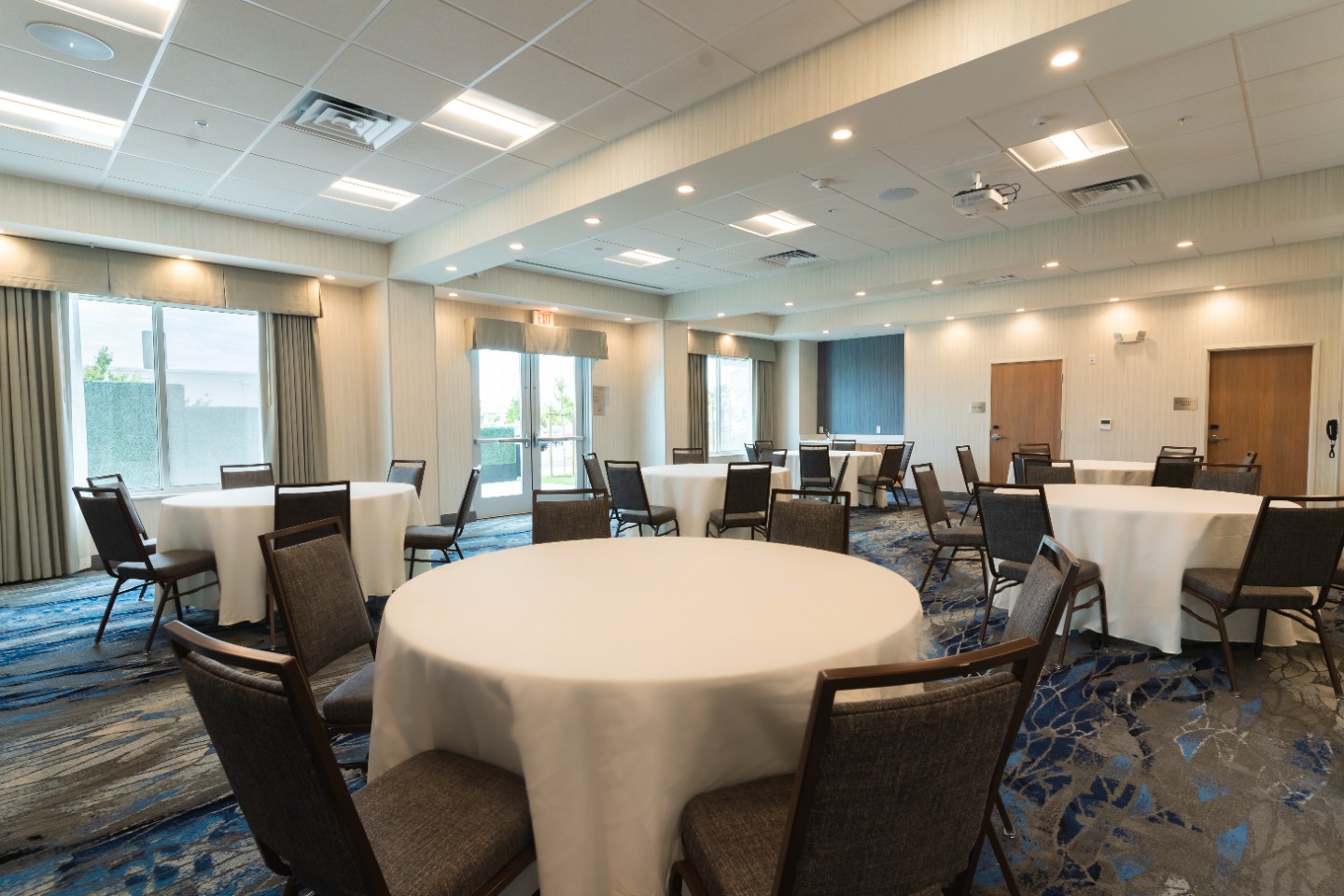 The Sunset Banquet Room at the Fairfield Inn & Suites Lodi is the perfect venue for your next wedding reception, business meeting, corporate event, awards ceremony, or seminar. The complete banquet room can comfortably accommodate up to 170 seated guests with ease. Complete with a prep kitchen, wet bar, projector system, and built-in surround sound, the Sunset Banquet Room is Lodi's premier meeting venue for large yet intimate gatherings.