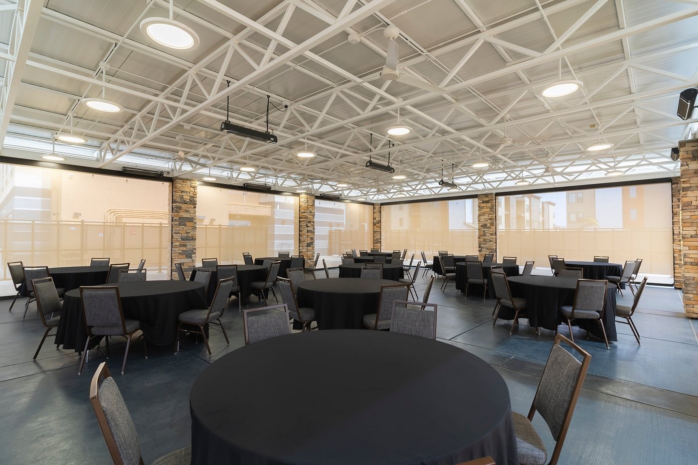 Are you looking for a pristine outdoor venue to celebrate your next special occasion? Our spacious Sunset Patio is complete with fans, vertical shade curtains, and heaters to keep your celebration going year-round. The patio space can comfortably accommodate up to 100 seated guests and is an excellent option for your next bridal shower, reception, birthday, or retirement party.