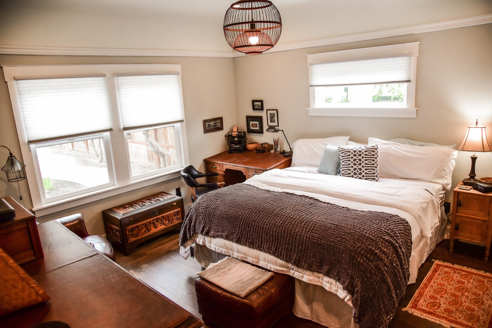 The Finches' Roost is a completely restored two-story, 4 bedroom, 3 bathroom craftsman home originally built in 1917 that includes 9-foot cove ceilings; wood trim throughout, new kitchen and appliances; laundry room; breakfast nook/office; large back yard with deck; zoned central heating and air; HD flat screen smart TVs in each room; a few blocks from downtown Lodi shopping, theater, restaurants and wine tasting. All utilities, WiFi and internet are included in the price. No Pets.
