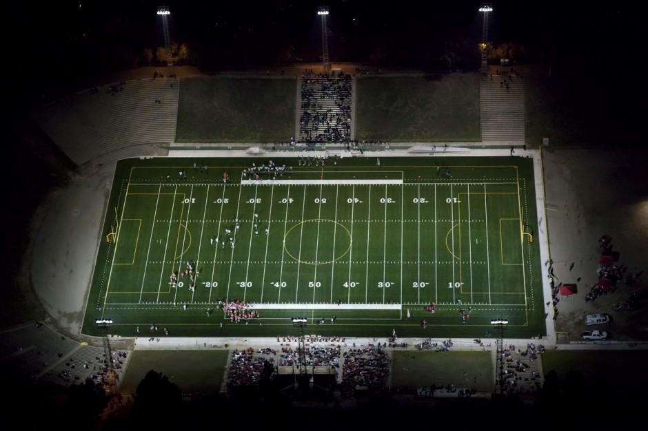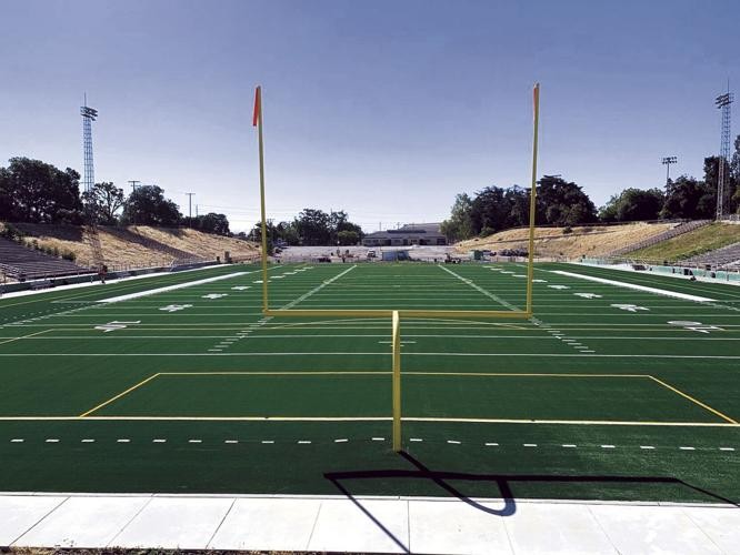 The Grape Bowl is a synthetic turf stadium available for football and soccer rentals. It features stadium seating on the south side with approximately 3,576 seats. Parking options include off-street parking, a field house lot, and nearby street parking.