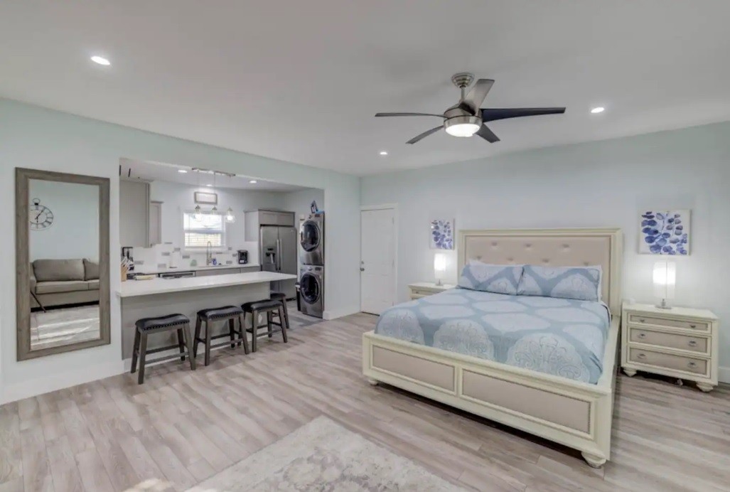 Our Spacious Modern Studio is located in the heart of Lodi, known for its wine and historic downtown. We are less than a mile from the beautiful Lodi Lake, the historic downtown, and just 1.5 miles to the popular Wine & Roses. Remodeled to its current beauty in 2020, our 700 sq foot studio offers you a bedroom with a full bath and a full kitchen.