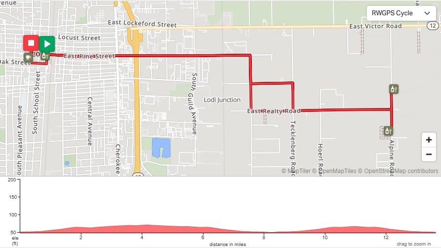 *Caution: You will be riding primarily on country roads with no bike lanes. Please ride responsibly and pull off the road to let large farm machinery pass safely. The routes in this map are provided as a representation of routes commonly used by local riders. No representation is made that they are safe from vehicular, animal, or road hazards. Users are cautioned to exercise judgment. Users assume all risks of riding bikes on the routes and agree to release hold harmless Visit Lodi! from any and all injuries or damages incurred as a result of riding on the routes.