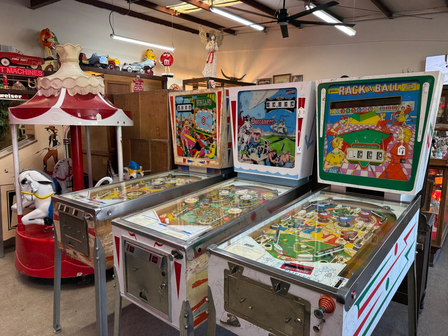 Arcade games, slot machines, and restored clocks
