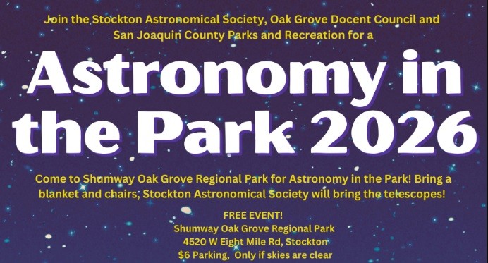 Experience the magic of the night sky at Oak Grove Regional Park during Astronomy in the Park, a family-friendly evening dedicated to stargazing, science, and celestial discovery in Lodi.