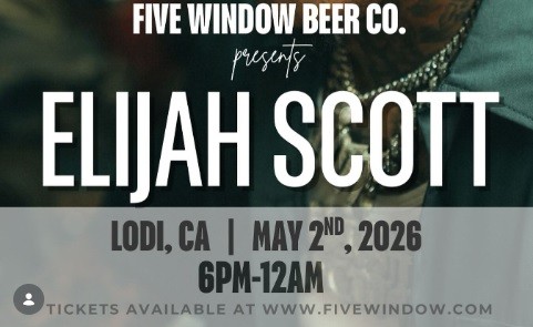 Experience an unforgettable night of live country music in Lodi when Elijah Scott takes the stage at Five Window Beer Co.’s beer garden. This special event brings together great music, local craft beer, and a lively atmosphere for an intimate outdoor concert.