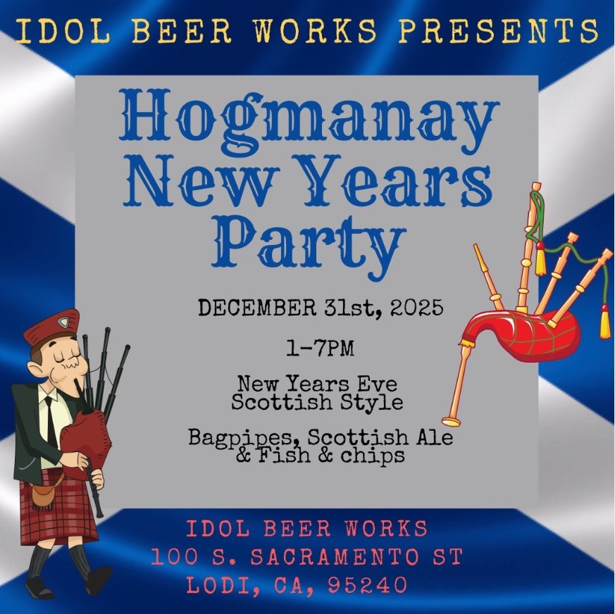 Celebrate New Year’s Eve the Scottish way with Idol Beer Works’ annual Hogmanay New Year’s Party in downtown Lodi. This lively, Old World–inspired celebration lets you ring in the New Year early—when the clock strikes midnight in Scotland.