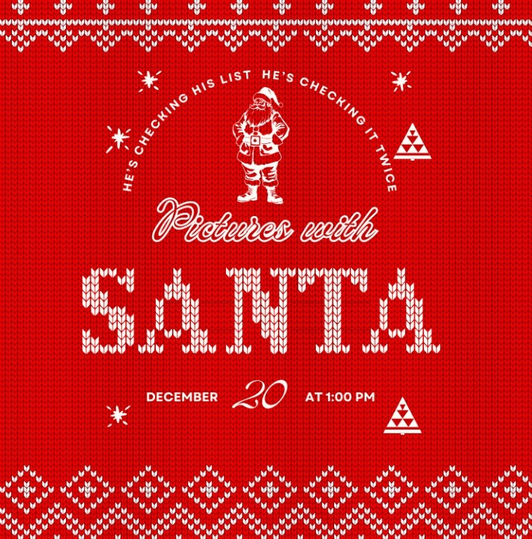 Photos with Santa: 1:00–4:00 PM