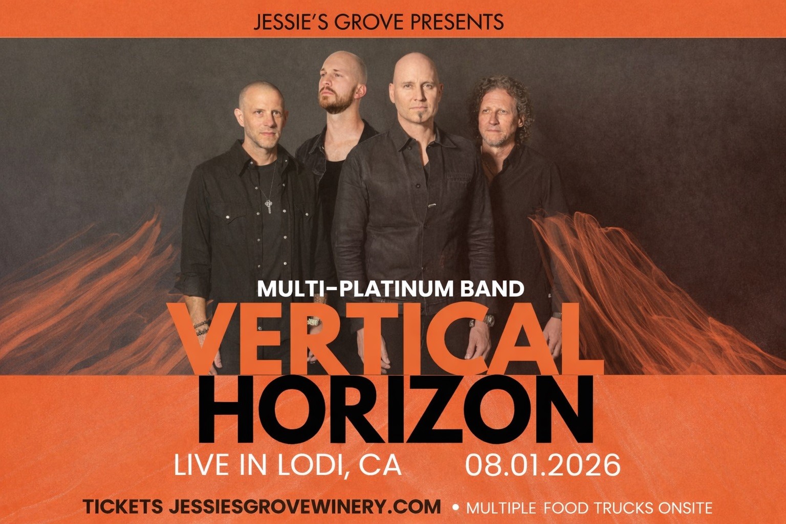 Get ready for an unforgettable night of live music at Jessie’s Grove Winery as Vertical Horizon takes the stage. Known for their high-energy, emotionally charged rock sound, the band delivers a powerful live performance that blends iconic hits with fresh new music. Led by Matt Scannell, Vertical Horizon’s onstage chemistry pulls fans in from the very first note—making every show feel personal, electric, and deeply connected.
