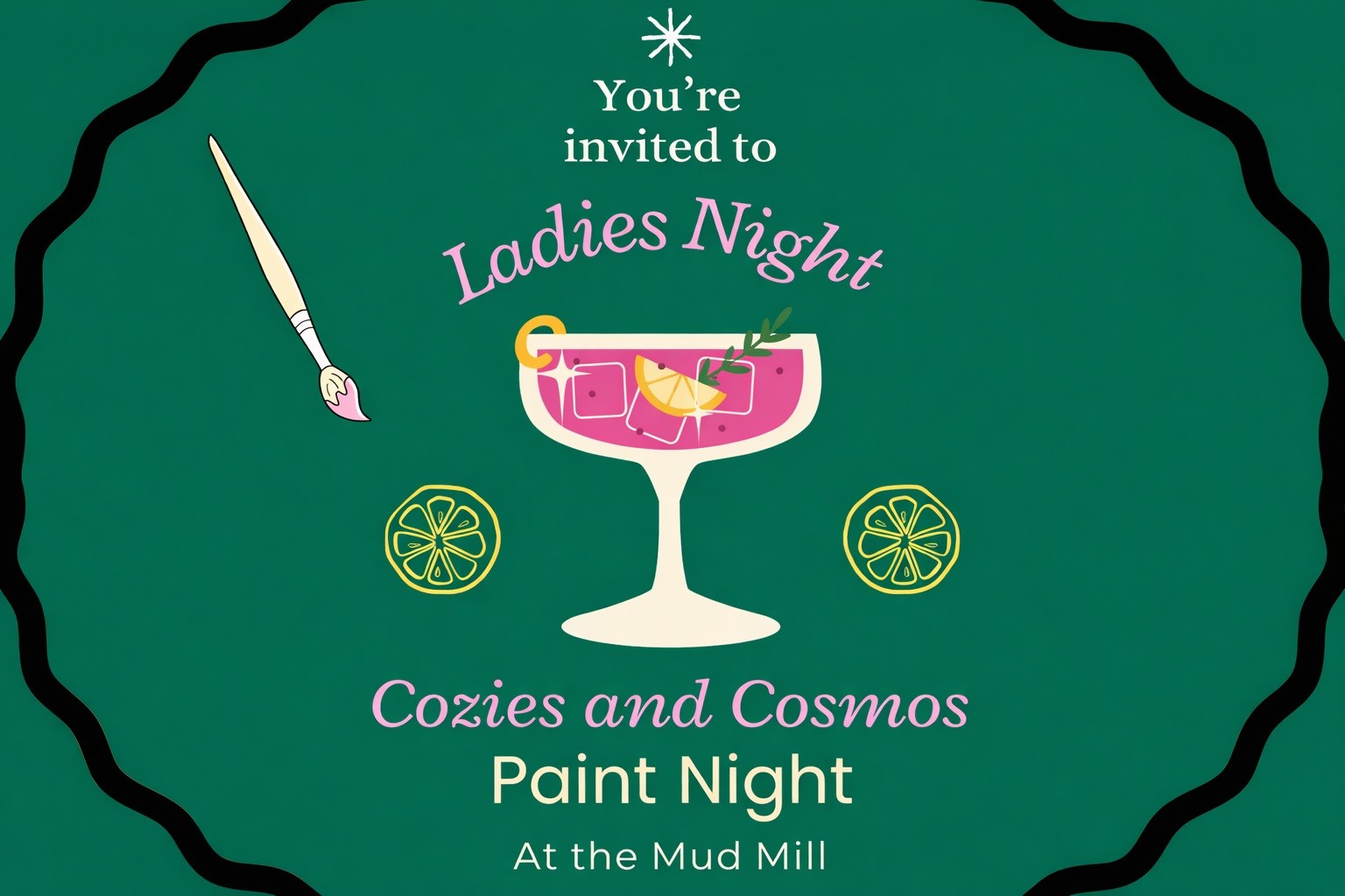 The holidays are over—now it’s time to unwind, get creative, and enjoy a fun night out with friends. Ladies Night: Cozies & Cosmos is the perfect excuse to relax, laugh, and create art you’ll love.
