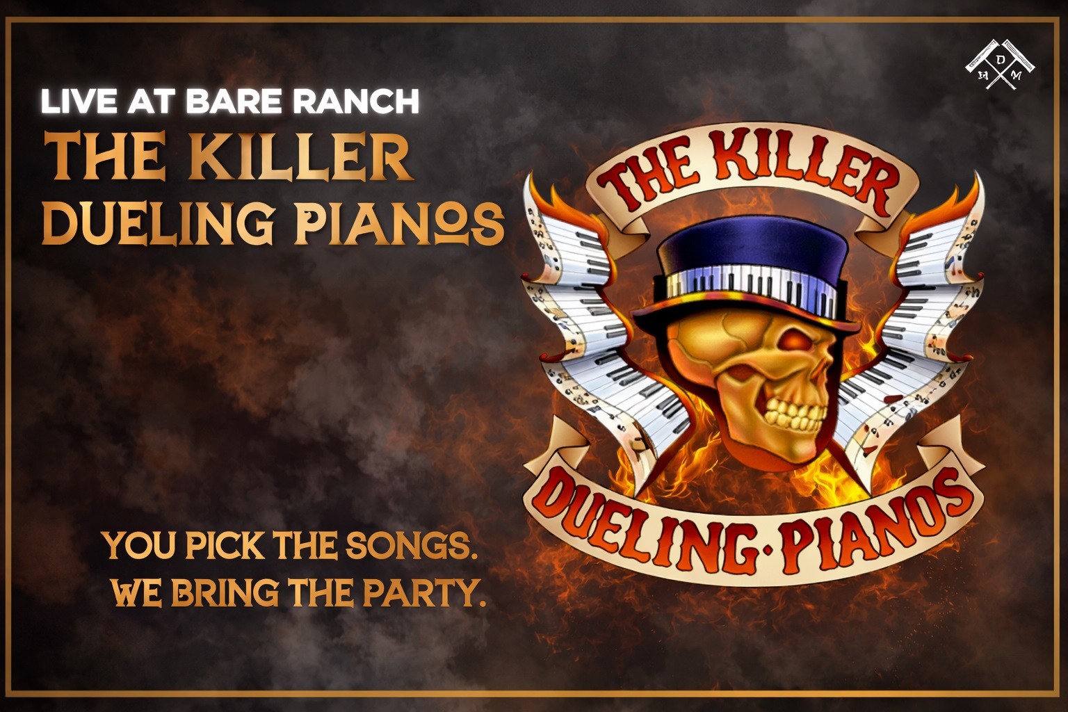 Get ready for an unforgettable night of music, comedy, and crowd-powered entertainment at Bare Ranch. The Killer Dueling Pianos bring a high-energy, all-request show where you control the playlist. From classic hits to modern favorites, Ryan Bueter and his talented performers turn every song into an interactive experience—complete with sing-alongs, dancing, and plenty of laughs. No two performances are ever the same!