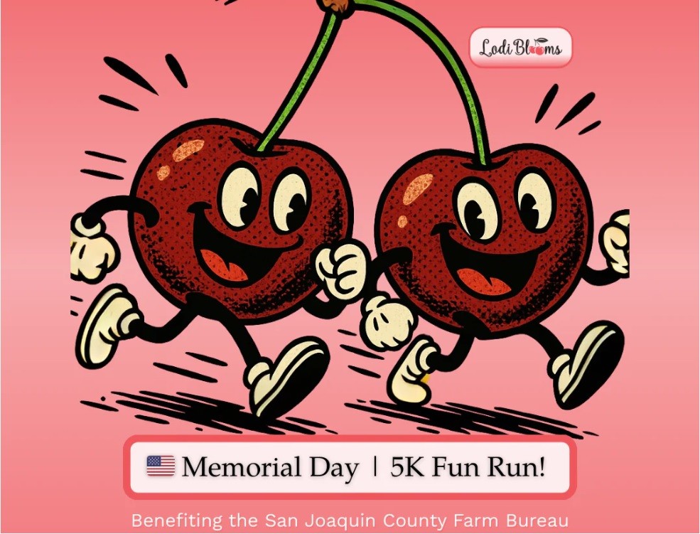 Celebrate Memorial Day with a unique run through one of Lodi’s beautiful cherry orchards. The Lodi Blooms Memorial Day 5K Run / Walk, hosted at the Lodi Blooms Cherry Orchard and powered by the San Joaquin County Farm Bureau, invites runners, walkers, and families to enjoy cherry season in a truly memorable setting.