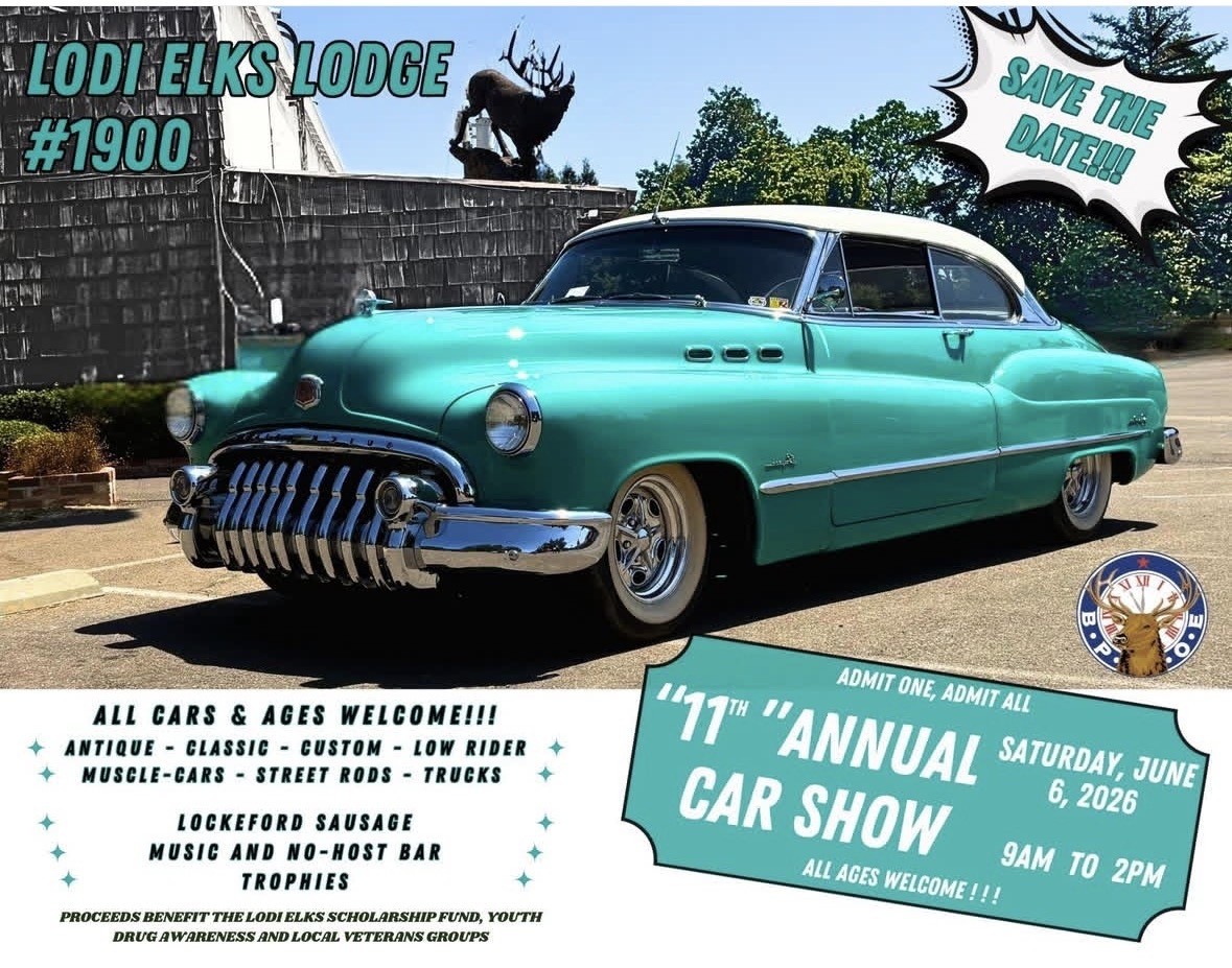 This annual event is more than just a car show—it's a celebration of community. Proceeds support the Lodi Elks Scholarship Fund, youth drug awareness programs, and local veterans groups.