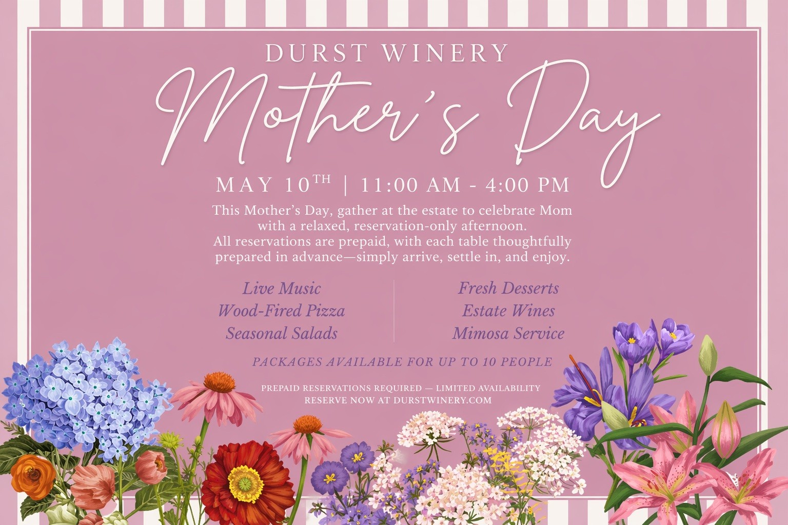 Make this Mother’s Day memorable with great food, wine, and a relaxed winery atmosphere. Reserve your table in advance at DurstWinery.com.