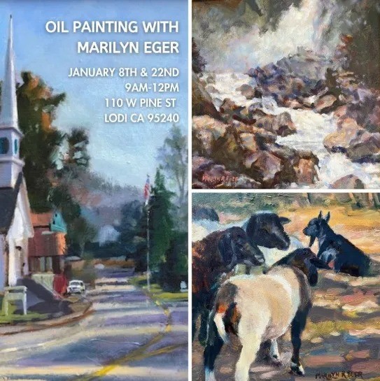 Join local artist Marilyn Eger for a hands-on, small-group Oil Painting Workshop at the Lodi Community Art Center. In this two-session class, Marilyn will guide you through every step of creating a finished oil painting based on your own photograph. With personalized instruction in composition, color theory, color mixing, and technique, this workshop is perfect for artists of all levels—from high school students to adults.