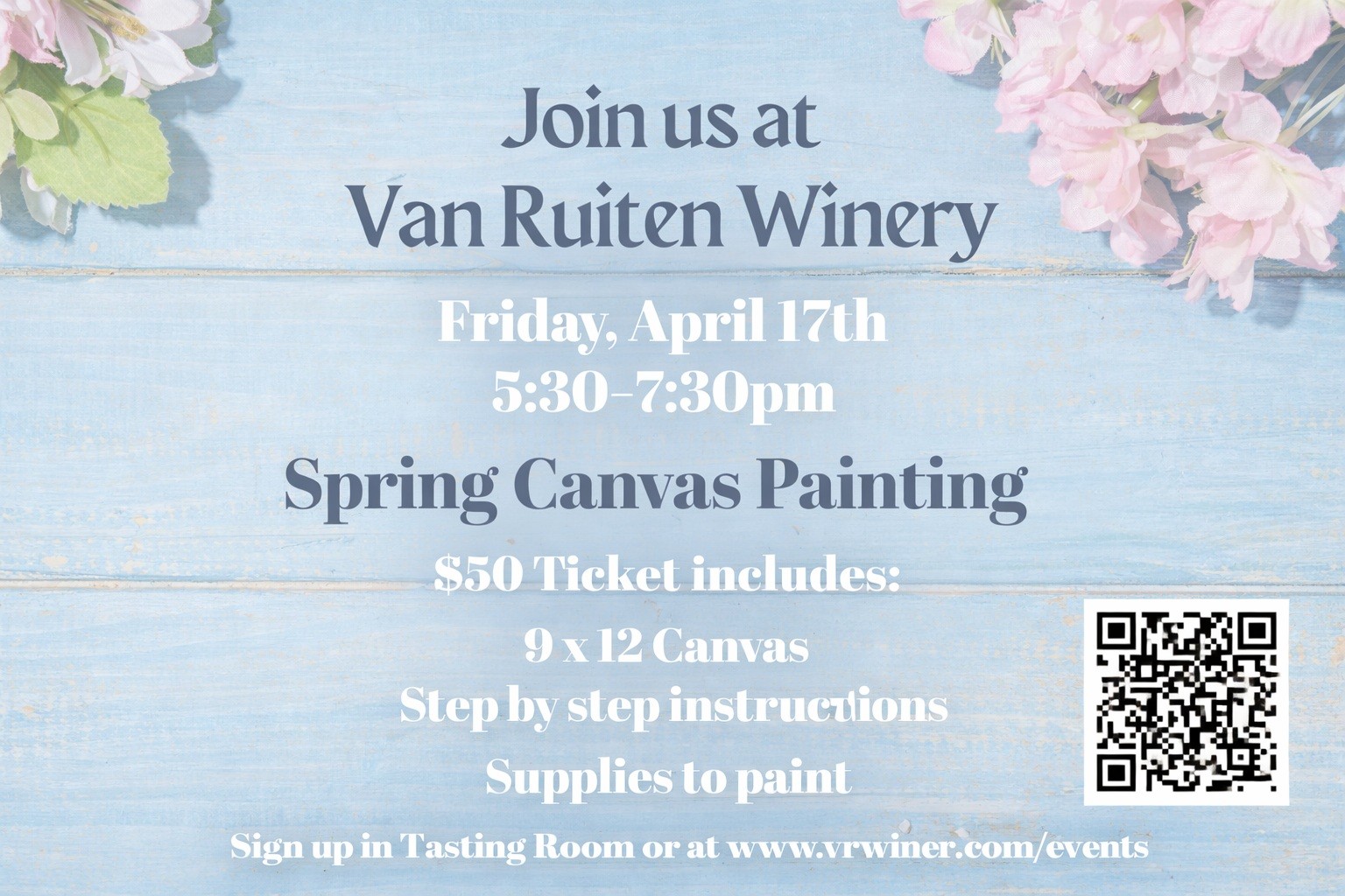 Unwind with an evening of creativity and wine at Van Ruiten Winery during this relaxing Spring Canvas Painting event. Whether you're a beginner or a seasoned artist, you'll be guided step-by-step to create your own seasonal masterpiece.