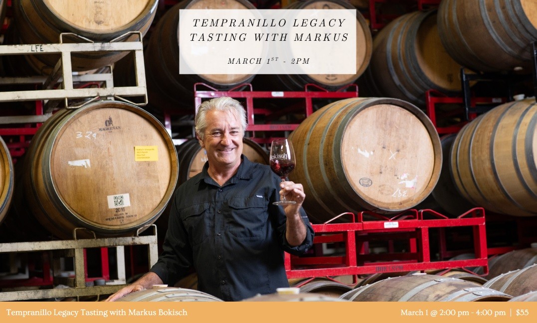 Join us for a rare and intimate tasting experience celebrating the Legacy of Tempranillo at Bokisch Vineyards, hosted by founder Markus Bokisch.